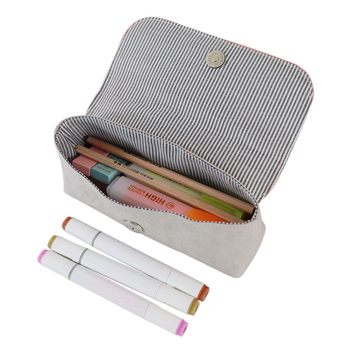 條紋里布大容量多功能筆袋定制 韓國文具簡約風糖果色翻蓋文具盒定制
