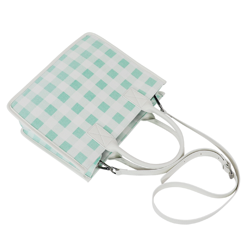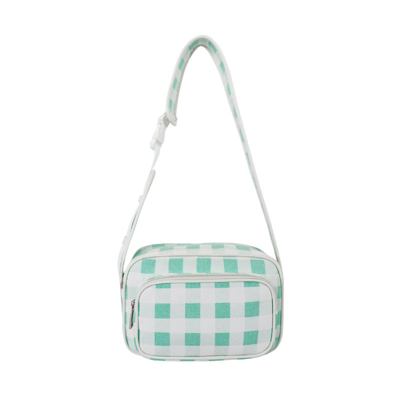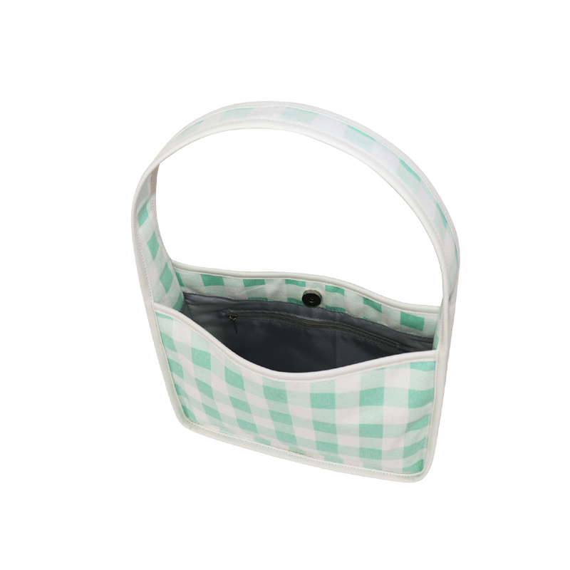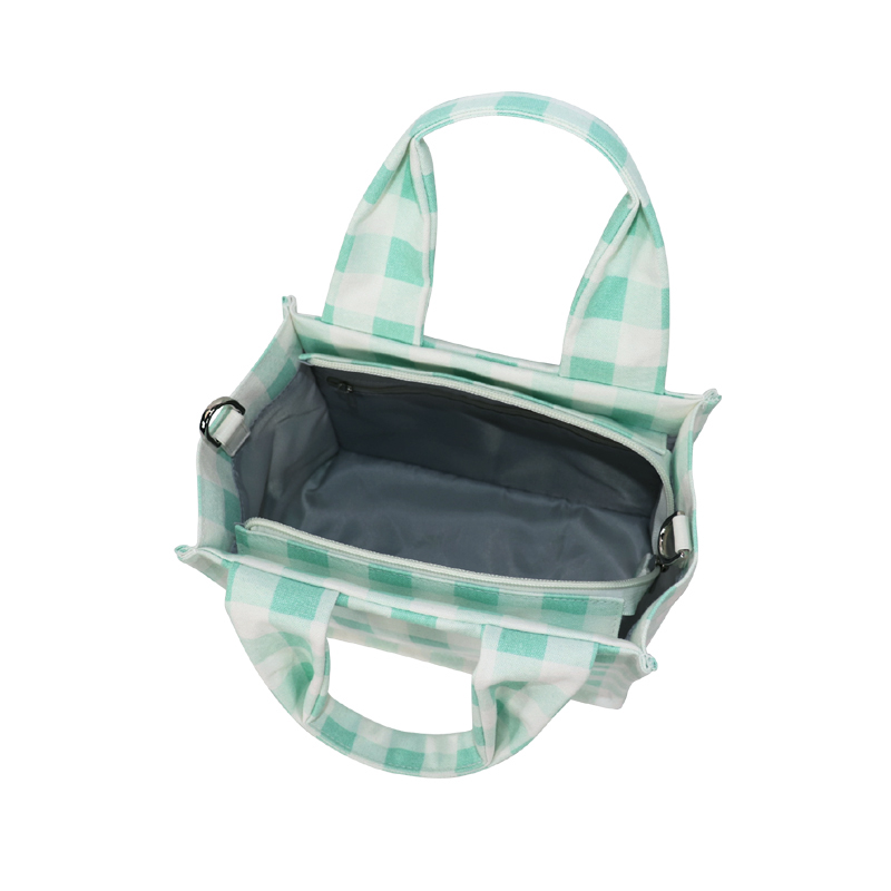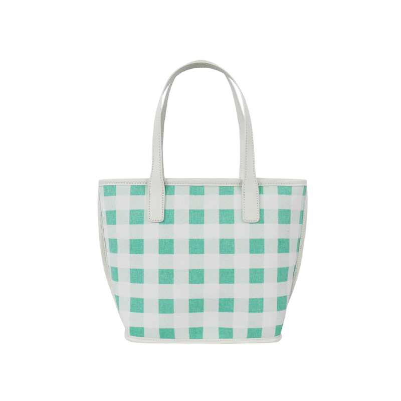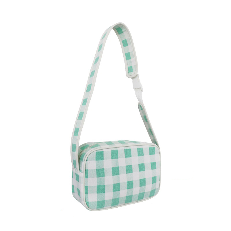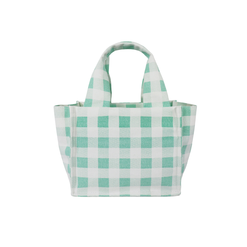 森系上班小拎包 帆布網(wǎng)紅小紅書小方包 韓國綠格子小眾手拎單肩包