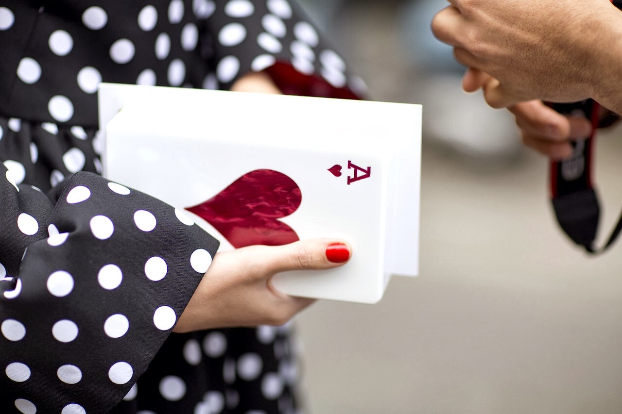 撲克牌造型的手拿包小巧而精致,有點古靈精怪,仿佛人群里妙趣橫生的魔術師,下一秒鐘就從手拿包里變出一只玫瑰。也別以為撲克牌手拿包只有搞怪,一樣能打造出堪比明星的時尚感。