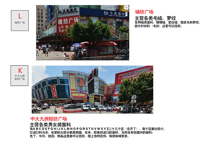 針織:可以去AB區(qū)去找,那里整個(gè)一片都是。條紋,花色,凈色,都有。其中找凈色的可以去F區(qū)**大街那,大屏幕底下從泰森布業(yè)開始,那一排都是做針織的。且都有現(xiàn)貨。AB區(qū)有兩個(gè)停車場,有發(fā)往廣州周邊加工廠的各種車隊(duì)。