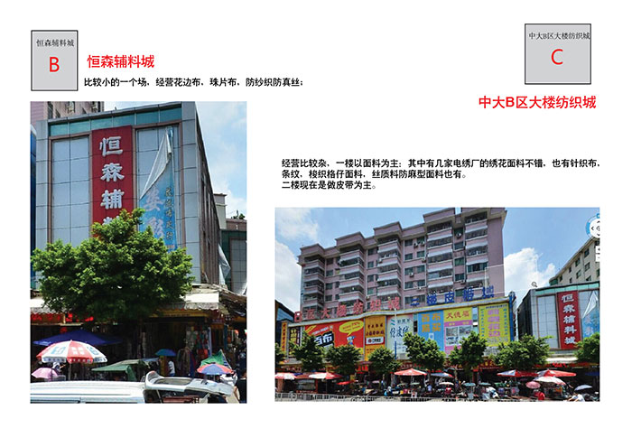廣州國際輕紡城是中大最大的市場。產(chǎn)品非常齊全,設(shè)施和環(huán)境也相當(dāng)不錯(cuò)。很多紡織龍頭都在此。檔口租金貴,面料價(jià)格也貴了不少。