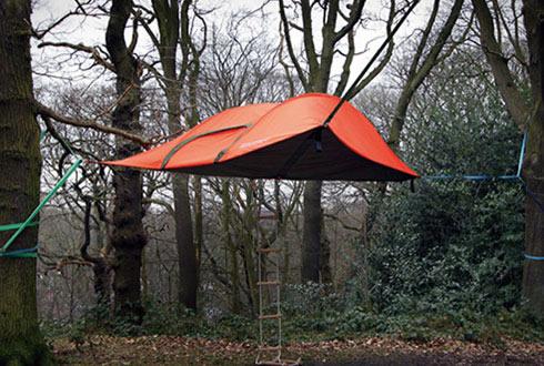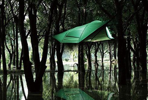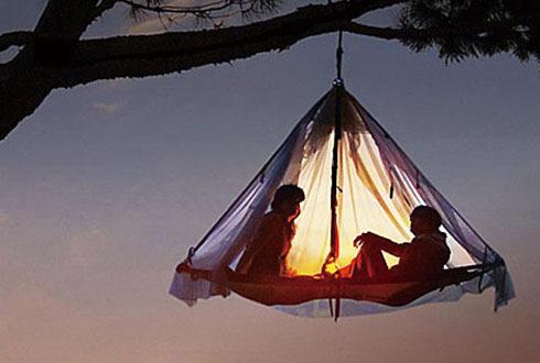 看看這款帳篷,給人一種懸浮在空中的錯(cuò)覺。該帳篷通過(guò)高強(qiáng)度的繩索吊在四周的樹桿上,乍一看起來(lái)像吊床,既安全又保證了隱私。此外,這款帳篷還附加了一個(gè)繩梯,這樣的話你在晚上仍然可以順暢地爬進(jìn)帳篷。