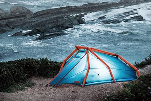 這款帳篷的支撐結(jié)構(gòu)是一種“充氣梁”,你可以在一分鐘之內(nèi)給帳篷充滿氣,將其支起來(lái)。