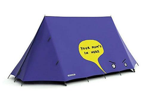 這款帳篷上寫了一個(gè)標(biāo)語(yǔ):“你媽在這兒!”,雖然粗魯,但對(duì)偷窺者是一個(gè)警告。