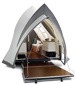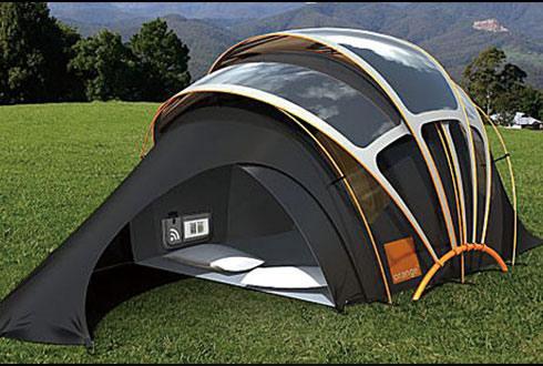 近年來(lái),帳篷設(shè)計(jì)潮流越發(fā)趨向綠色環(huán)保。這款帳篷設(shè)計(jì)前衛(wèi),裝有WiFi鏈接裝置、太陽(yáng)能電池板和照明系統(tǒng)。