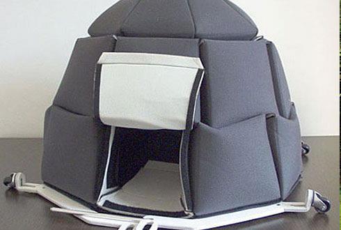 上面那款透明的塑料帳篷是否讓你覺得它不夠結(jié)實(shí)耐用?不要緊,這款用防水材料做成的帳篷,它由一片片厚實(shí)的襯料組成,在寒冷的冬夜里,住在這款帳篷里仍然能感到暖和。