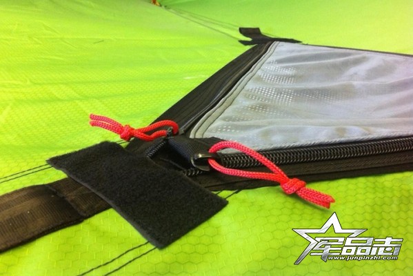 帳篷的主體由高強(qiáng)度尼龍/聚酯復(fù)合面料制成,足夠結(jié)實(shí),并具備較強(qiáng)的防水性。帳頂部分采用防撕尼龍網(wǎng),面料上的網(wǎng)眼偏細(xì),可在通風(fēng)透氣的同時(shí),起到一定的防蟲、防塵效果。Stingray配有可拆卸式防雨帳,由聚酯材料制成,并經(jīng)防水涂層處理。安裝防雨帳后,帳篷可防小到中雨。另外Stingray還配備了2根直徑為8.5mm的7001 T6鋁合金帳桿,用于將帳篷搭建。3個(gè)金屬棘輪扣以及3條長6m的尼龍固定帶,是用來與樹木固定的。