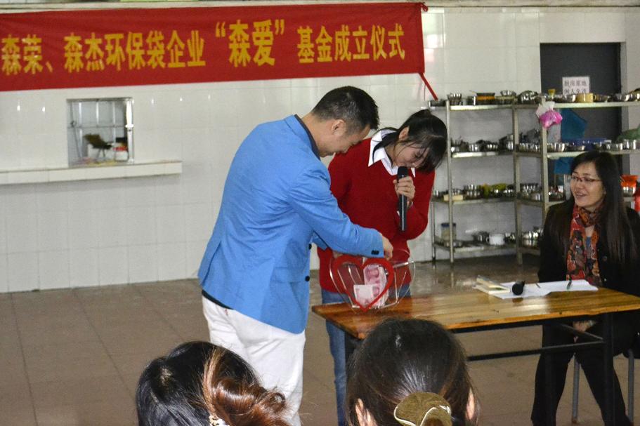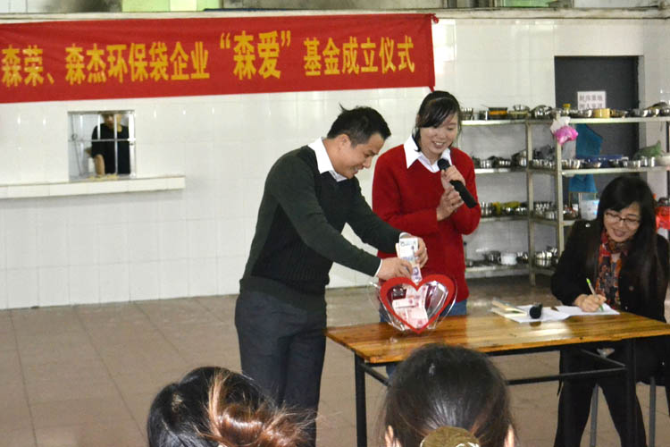 2012年12月3日這一天廣州市森榮手袋制造有限公司、廣州森杰無(wú)紡布制品實(shí)業(yè)有限公司正式成立“森愛基金”。