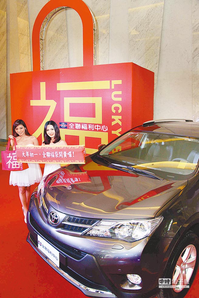全聯今年春節(jié)檔期則有2個創(chuàng)舉,一是福袋,一是抽汽車。全聯表示,消費滿500元,就有抽汽車的機會;初一當天,購買內容物價值200元的百元福袋,總計7萬個,也有一個抽中汽車機會,今年總計送出2輛汽車。全聯強調,只要花100元買福袋,就可抽價值102萬元的汽車,投資報酬率最高,預估初一當天,也許半小時福袋就會銷售一空。預估業(yè)績至少成長一成以上。