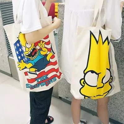 帆布袋的設計再簡單不過,外形輪廓模仿大容量的托特包,材質(zhì)選用棉麻織物的帆布。實用得能裝下一個宇宙。帆布袋的米白色簡潔清爽,設計師在上面千奇百怪的涂鴉更讓帆布袋打動小清新的歡心。