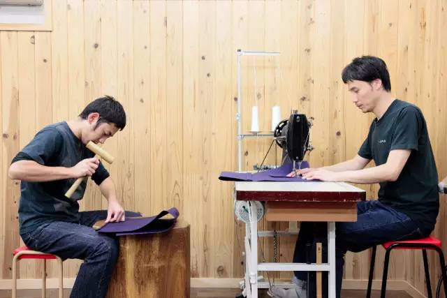 由于帆布厚且硬的特質(zhì),一澤家的帆布制品在裁剪之后和上縫紉機(jī)之前,會(huì)多出一個(gè)由木槌捶打成型的工序。