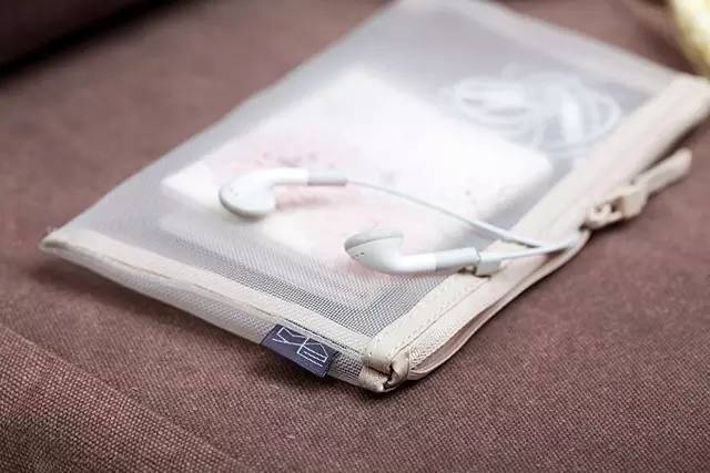 網(wǎng)格袋,可以裝一些小物件:證件、耳機、零錢等等,而且是透視的,裝了什么,一目了然。
