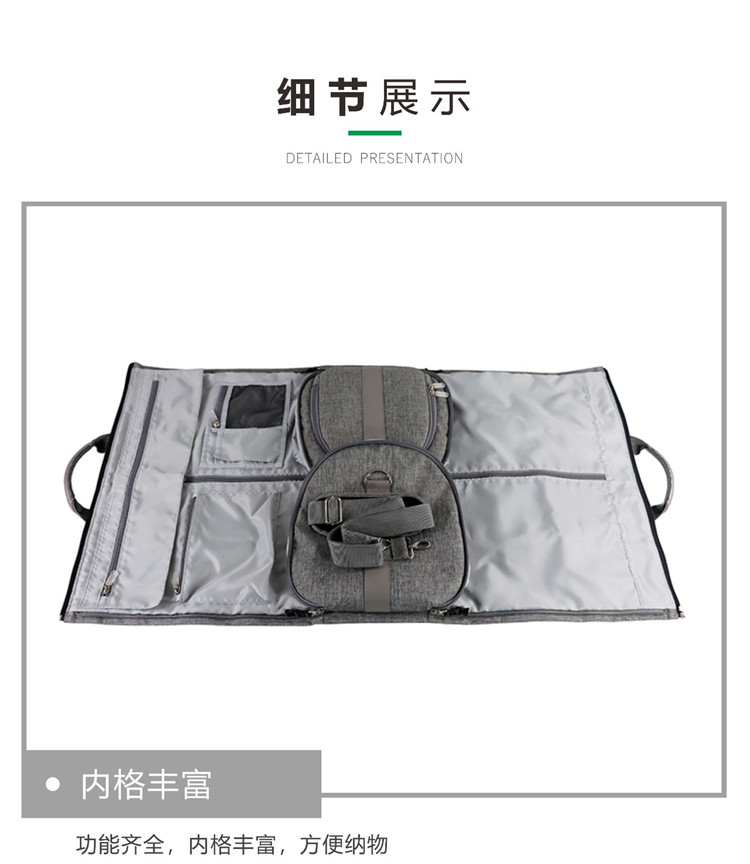 包包內(nèi)格豐富,鞋子、西裝都能帶