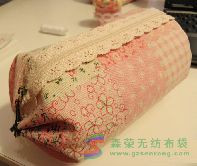 其實(shí)這款化妝包非常簡(jiǎn)單,不懂針線的朋友也可以輕松做出來(lái),而且收納功能很強(qiáng),圓柱體的體積在立方體里是最大的,因此你會(huì)驚訝的發(fā)現(xiàn)好多化妝小物都能輕松收納進(jìn)去,當(dāng)然也可以用作筆袋,手機(jī)包等等。歸納起來(lái),整個(gè)制作過程可以分為三步:一,表布和里布縫合;二,收緊兩頭做出圓筒狀;三,加上裝飾和提手。