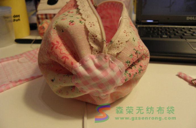 此時(shí)最好剪一塊布對(duì)封口處進(jìn)行加固,因?yàn)槔o的地方有可能會(huì)松掉,而這塊布以后會(huì)被擋住,針腳神馬的不用太在意: