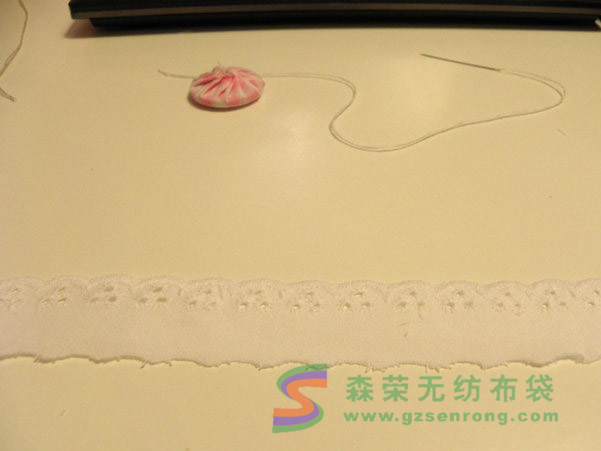 接下來(lái)我還加了一圈花邊,做成一朵小布花: