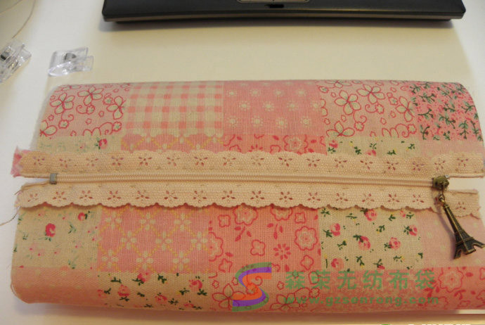 如果只縫一邊的提手,就是個(gè)手拿包;如果兩邊都縫上提手加上長(zhǎng)的包帶,就變成一個(gè)小挎包;表布當(dāng)然還可以采用拼布和貼布的方法繪制各種各樣的圖案,總之發(fā)揮您的創(chuàng)意吧!