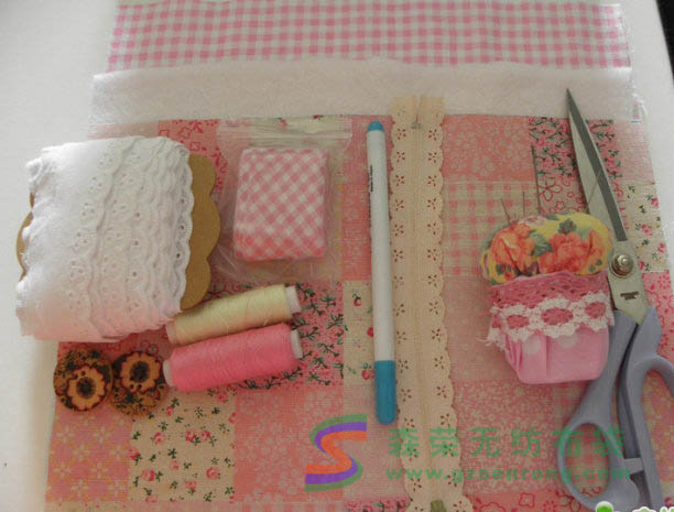 2. 拉鏈/花邊/紐扣/包邊條--在這里我用的是花邊拉鏈,但其實(shí)用普通的拉鏈也完全可以,只是上的方法有所不同而已。包邊條用普通的棉布來(lái)裁就可以,要斜紋45度哦,如果不想做的話直接taobao買也行。