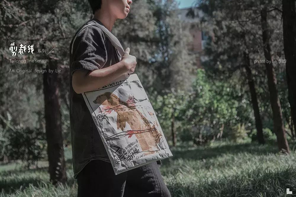《剪裁線》系列是一次為動物保護的發(fā)聲。除了手繪圖案外,兼具布料韌性、皮膚透氣性和紙質(zhì)印刷力的Tyvek? 面料本身,便是代替動物皮毛的好選擇。